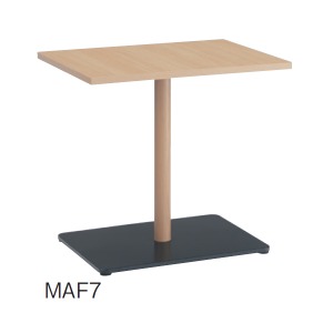 スチール製木調特殊印刷脚を採用した単柱脚テーブル。カフェやラウンジ、病室でもお使いいただけます。