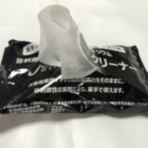 J's Guard クリーナーとは、200ppm程度に調整した非刺激性・次亜塩素酸ナトリウムJ's Guardを出荷時に独自開発の専用シートに浸漬させたウェットティッシュタイプのシートです。