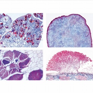 ネコブカビ、白さび病菌、うどん粉病菌、黒星病菌などが観察できるプレパラートです。
