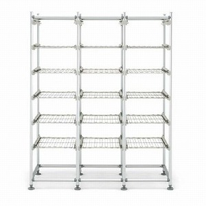 収納量に合わせ自由な組み合わせ。強度、防錆性、耐薬品性に優れ、さまざまな設置空間、運用方法に適応する多機能ラック。
