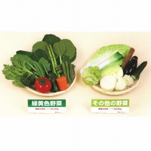 野菜を1日に350g以上摂取することを指導する際の目安に適した食材のセットです。自由に組み合わせて分かりやすく説明できます。
