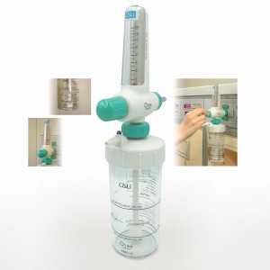 “OXYTUNE”酸素湿潤器は、アウトレットより供給される酸素の流量を調整し、適度な湿度を与えます。また酸素供給中にホースが折れ曲がるなどの原因で流路が閉鎖された場合には、安全弁が作動し、警告音(ピー)で知らせます。
