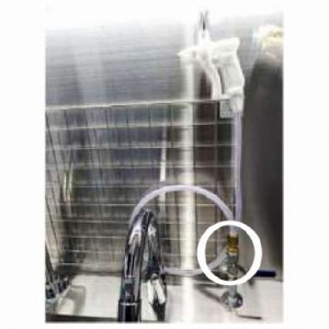 漏水事故防止のため、ウォーターガンの手前に必ずバルブを取付けしてください。(出来ればシンク天板上へ)