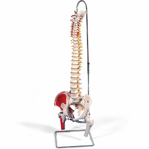 【筋の起始・停止部が着色された脊柱模型】