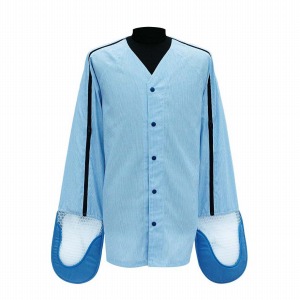 チューブ類自己抜去リスクのある患者様には、インシデント防止のための手指の動きを制限する抜管防止ミトンを着用することが多くみられます。患者様によってミトンが容易に外されてしまったり、ミトンが本来の目的を果たさずミトン着用状態でチューブ類を抜去してしまうことがあります。これらの問題を解決するために、ミトン付き着衣を開発しました。