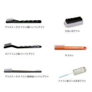 様々な目的にあったブラシを用意しました。ハンドルブラシ、ボトル洗浄ブラシ、平ブラシ、手洗用ブラシなどがあります