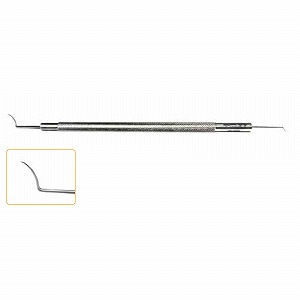 ●器具の片方が角膜のカーブに沿ったデザインのスパーテルで、もう片方はフックとして使用できます。