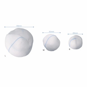 剃毛後の消毒時に綿残りがない、X線造影糸入ガーゼボールです。