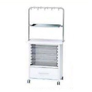 ケルンの注射準備作業台は、床から300mmの感染対策に配慮しつつ、重い輸液もラクラク出し入れ出来るスライドレールの引出し付と、コストパフォーマンスに優れたオープンタイプからお選びいただけます。