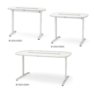 ●選べる2タイプ:天板固定(非昇降)タイプと天板電動昇降タイプの2タイプ。天板電動昇降タイプの天板可動範囲は高さ650〜1,150mmで、座位から立位での業務に対応することができます。またテーブル昇降時には障害物を検知する挟み込み防止機能付きで安心です。天板の大きさや形状は、スペースやご要望により特注製作が可能です。
